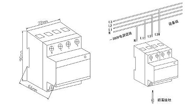 電源相線(L)、零線(N)分別接入電涌保護器相應(yīng)接線端子,保證牢固及可靠,將避雷器接地端與防雷地線(推薦接地電阻≤4Ω)作良好電氣連接。